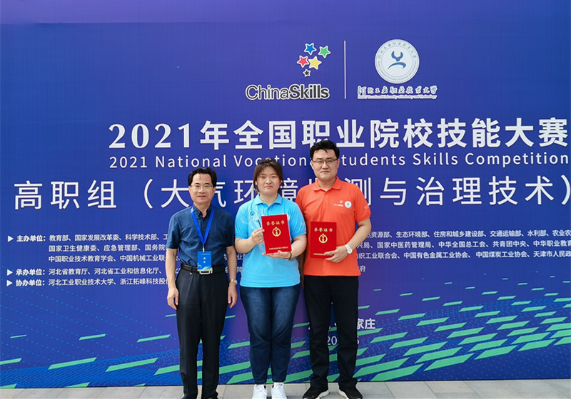 经过激烈角逐,给排19-2班袁芾同学在“环境监测与治理技术”赛项中脱颖而出,荣获一等奖第一名,指导老师孙悦荣获全国职业院校技能大赛优秀指导老师。由装饰18-4班许妍同学和装饰18-5班孙玉环同学组成的代表队在“建筑装饰技术应用”赛项中获二等奖。由城轨19-2班常进展、城轨19-2班李杰、城轨19-1班常茜源、路桥19-4班孙鑫等同学组成的代表队在“矿井灾害应急救援技术”赛项中荣获二等奖。